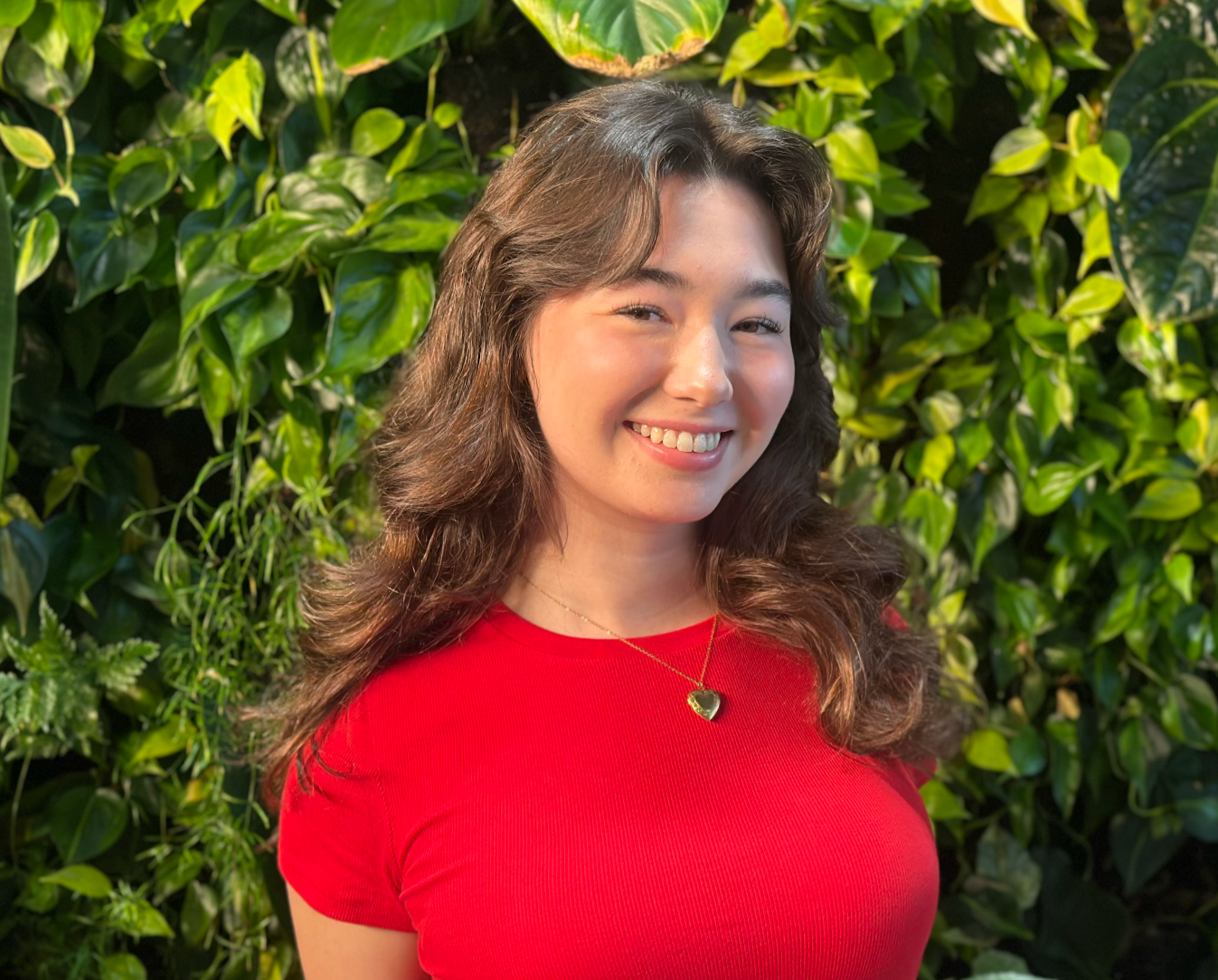 Georgia Looman in Richcraft Hall, the journalism building at Carleton University [Photo by Sophia Laporte].